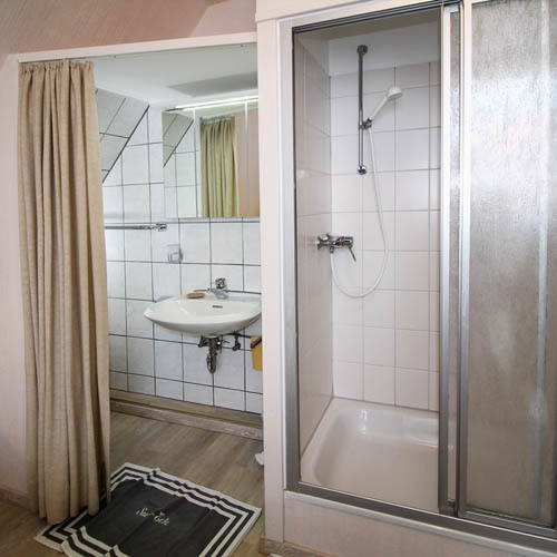 Das frisch renovierte Badezimmer verfügt über Dusche und WC.